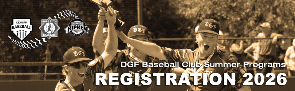 The DGF Baseball Club will start the Registration process on Sunday, February 1, 2026 with Cal Ripken, Babe Ruth and American Legion meetings in the DGF High School Theater in Glyndon.